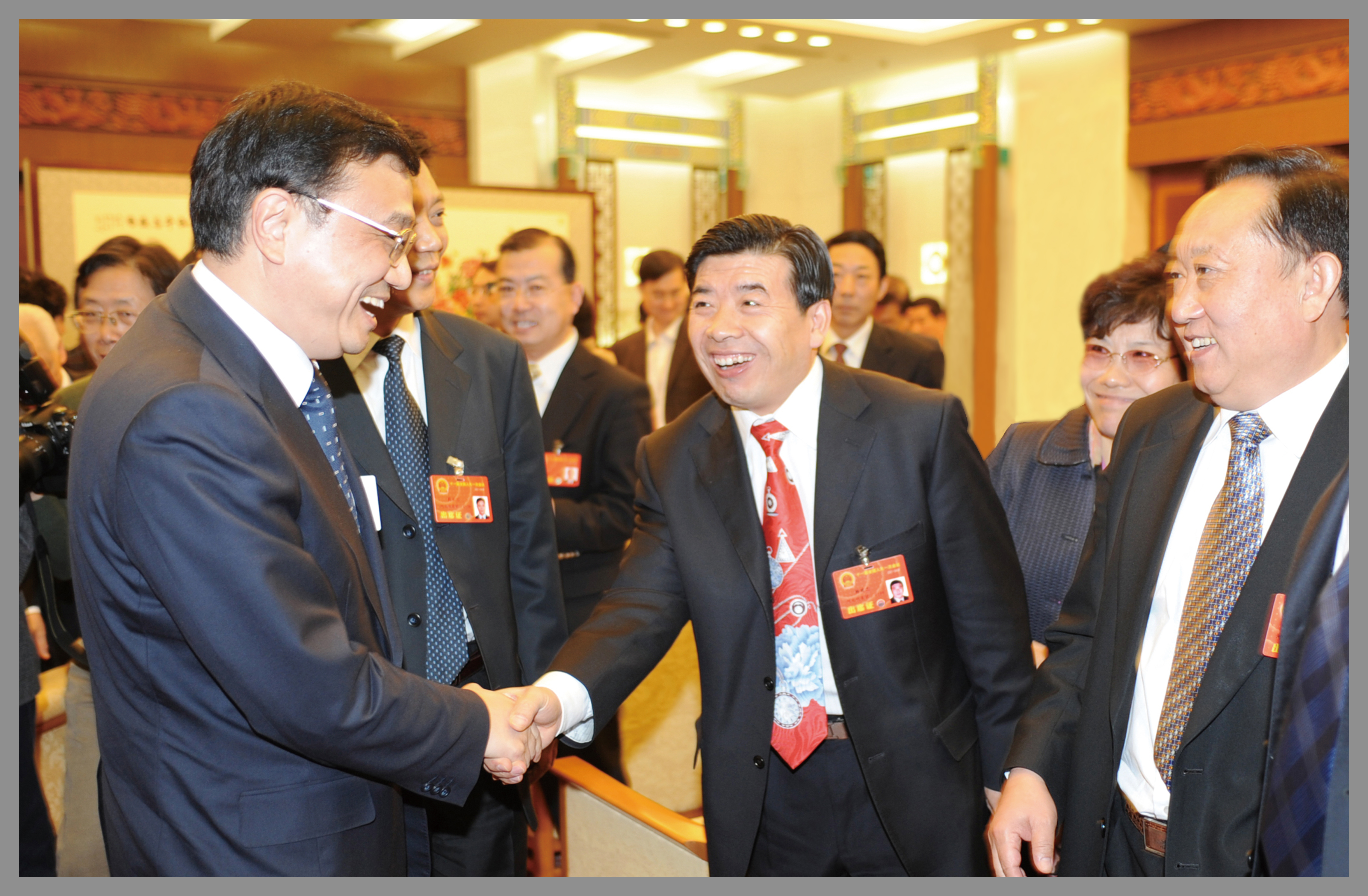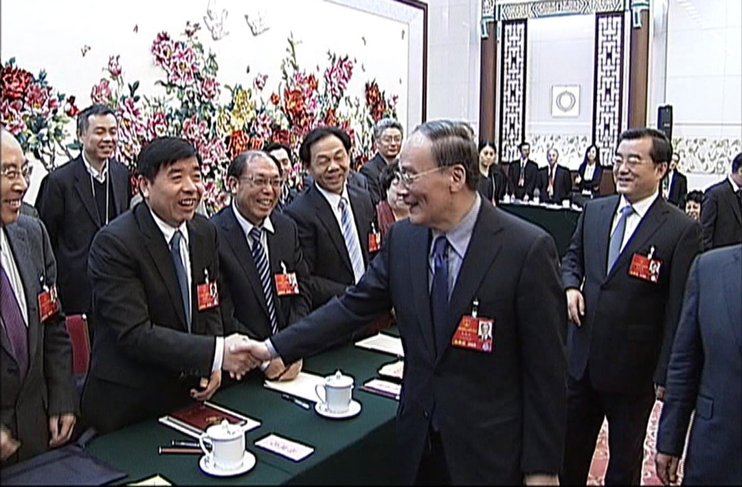時任中央政治局常委、中央紀委書記王岐山與楊建忠董事長親切握手